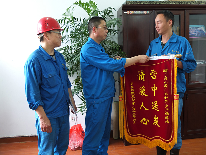近日,生產(chǎn)保障處舟山船廠作業(yè)區(qū)空壓機(jī)操作工劉凱收到善款共計11340元。這批獻(xiàn)愛心者是集團(tuán)生產(chǎn)保障處的70多名員工。