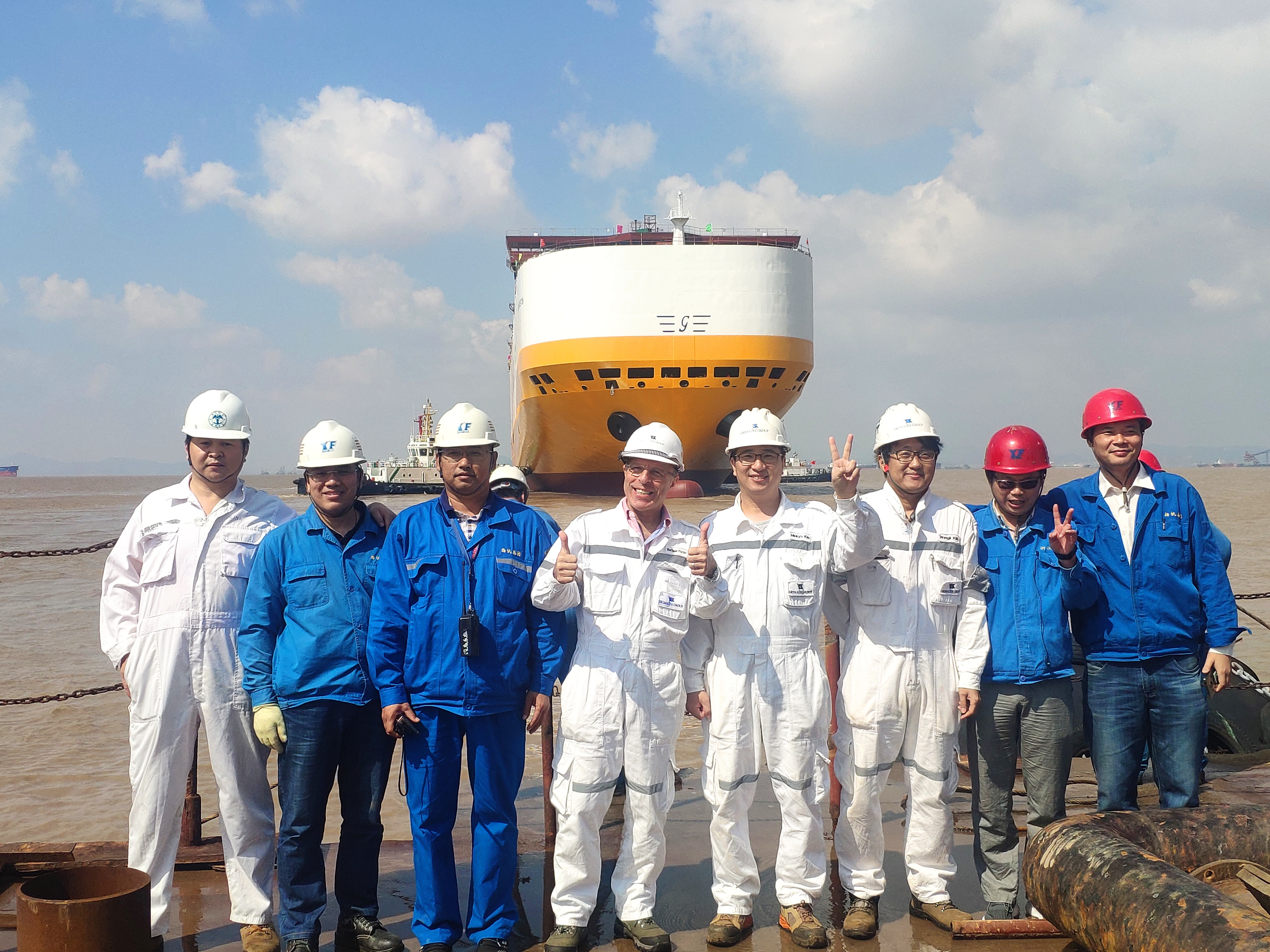 2019年10月19日上午,揚(yáng)帆集團(tuán)下屬浙江東海岸船業(yè)有限公司一艘7800PCTC系列汽車滾裝船順利下水,出塢狀態(tài)完整性超越已交付的兩艘系列船。