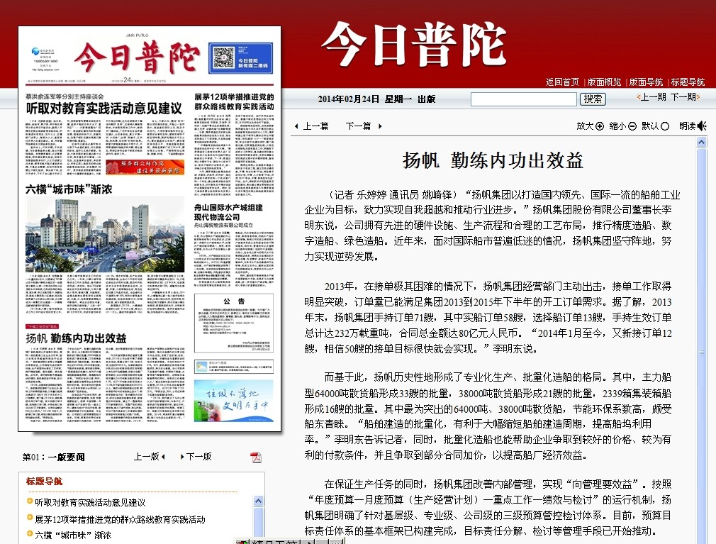 2014年3月17日《舟山日報》